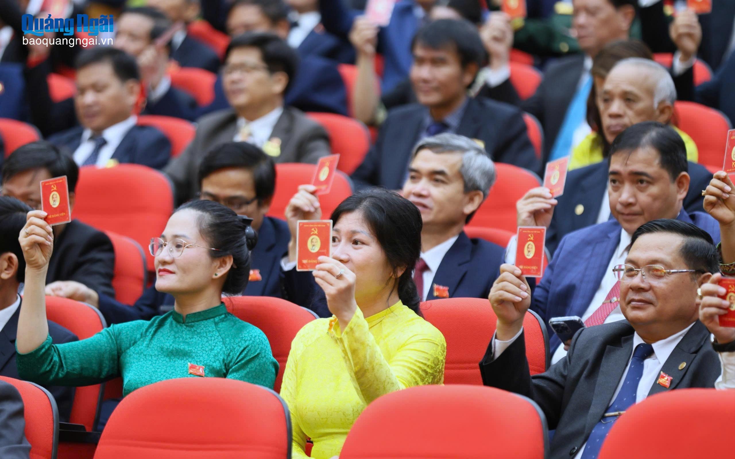 Các đại biểu biểu quyết thông qua dự thảo nghị quyết đại hội.