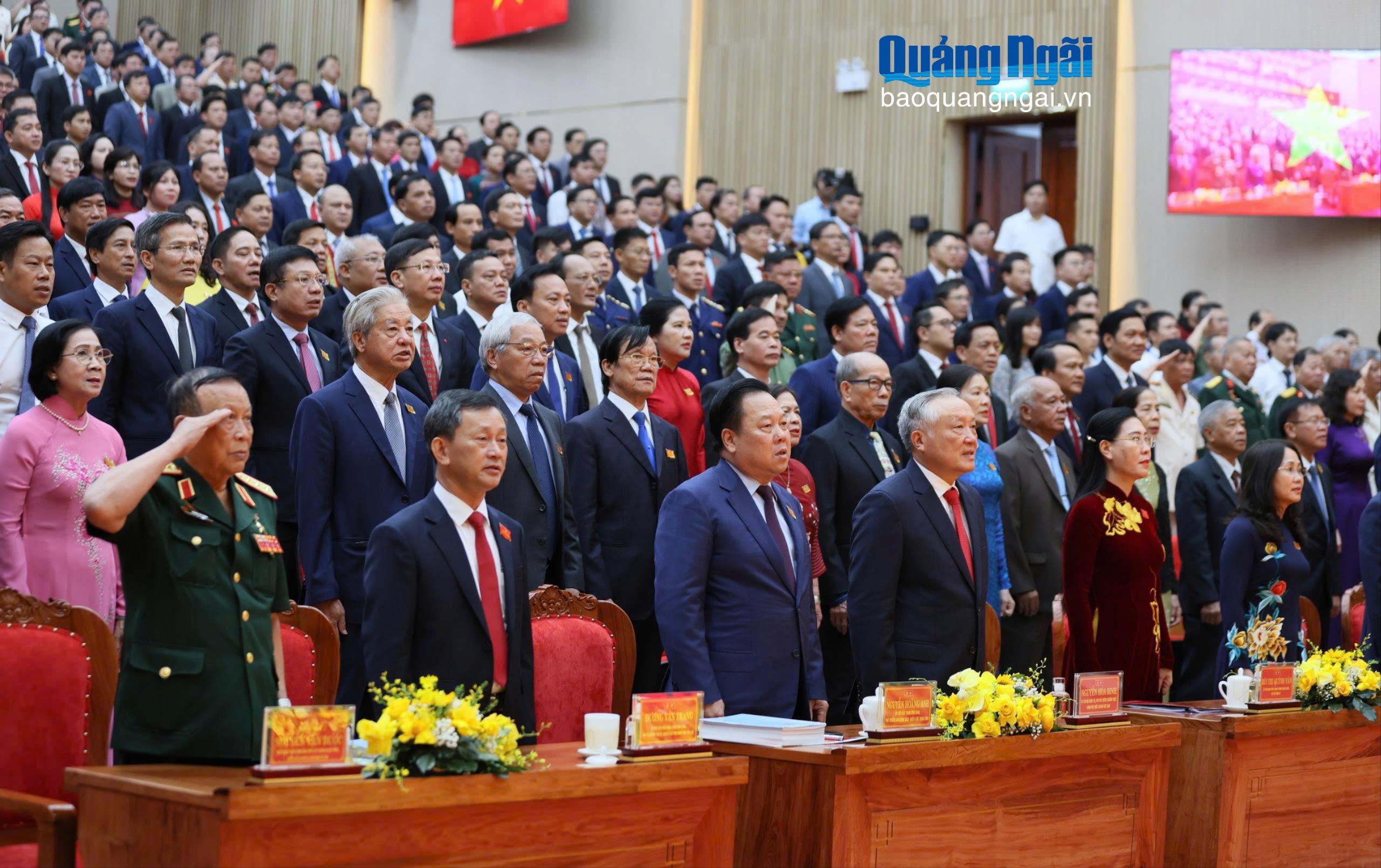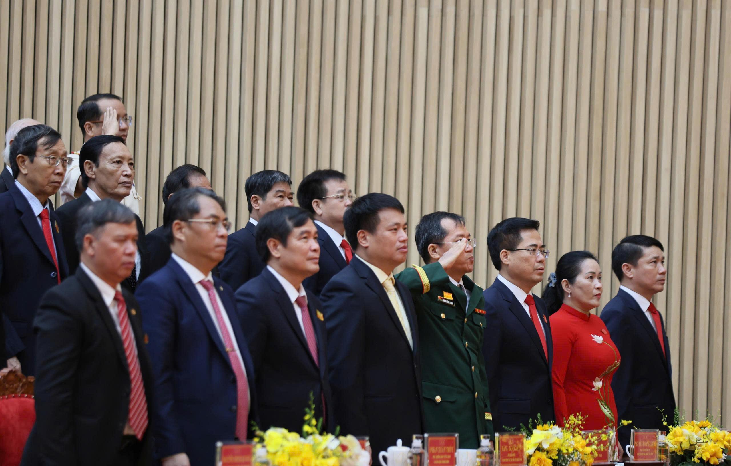 Lãnh đạo Đảng, Nhà nước và lãnh đạo tỉnh cùng các đại biểu dự đại hội thực hiện nghi thức chào cờ.