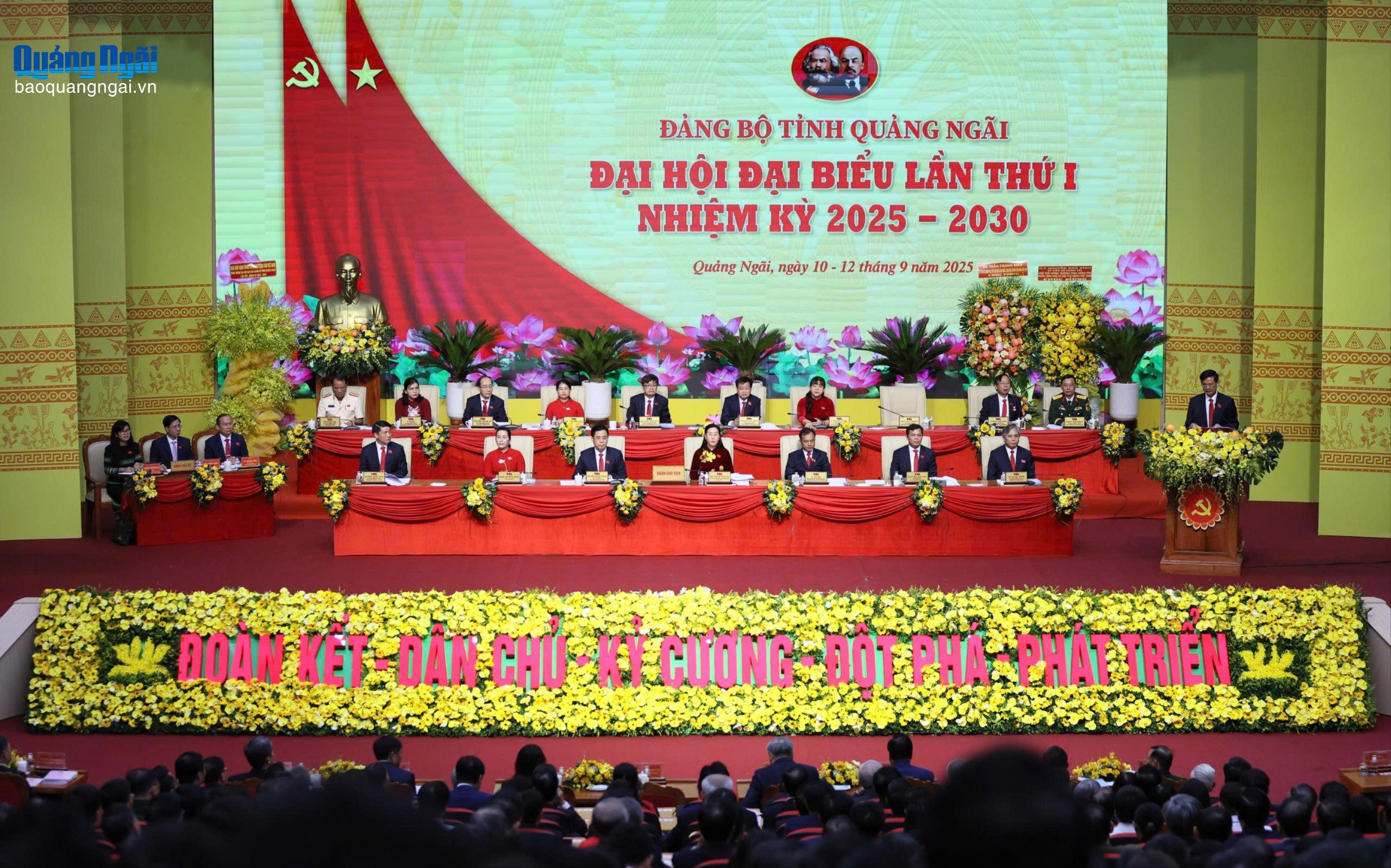 Với phương châm “Đoàn kết - Dân chủ - Kỷ cương - Đột phá - Phát triển”, Đại hội đại biểu Đảng bộ tỉnh Quảng Ngãi lần thứ I, nhiệm kỳ 2025 - 2030 chính thức khai mạc trọng thể tại Trung tâm Hội nghị và Triển lãm tỉnh, phường Cẩm Thành. Quảng Ngãi là tỉnh đầu tiên của cả nước tổ chức Đại hội đại biểu Đảng bộ cấp tỉnh.