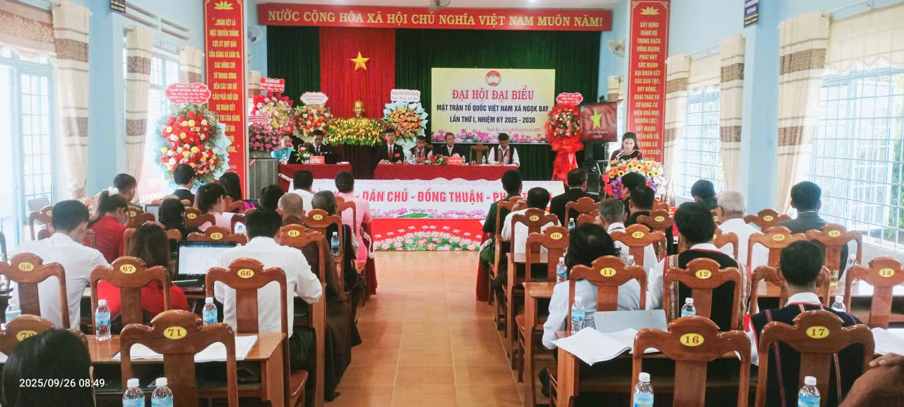 Ngày 26/9, Uỷ ban Mặt trận Tổ quốc Việt Nam xã Ngọk Bay long trọng tổ chức Đại hội đại biểu lần thứ nhất, nhiệm kỳ 2025-2030. Dự Đại hội có các đồng chí Trần Thị Phong Lan- Bí thư Đảng ủy; Nguyễn Văn Dung- Phó Bí thư Thường trực Đảng ủy; Hồ Thị Vị - Ủy viên Ban Thường vụ Đảng ủy, Phó Chủ tịch Hội đồng nhân dân xã; Hoàng Anh Tuấn – Uỷ viên Ban Thường vụ Đảng uỷ, Phó Chủ tịch Thường trực Uỷ ban nhân dân xã; lãnh đạo các phòng, ban của xã cùng 95 đại biểu đại diện cho các tầng lớp Nhân dân trên địa bàn xã.