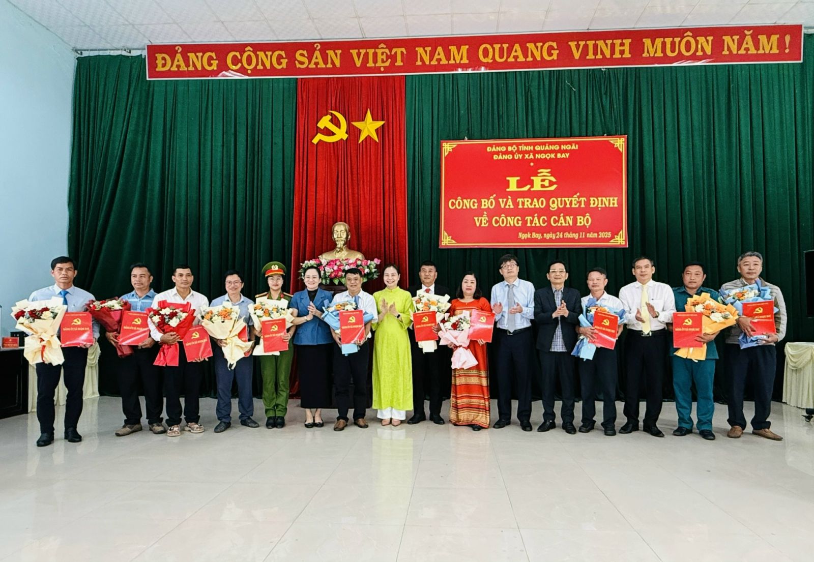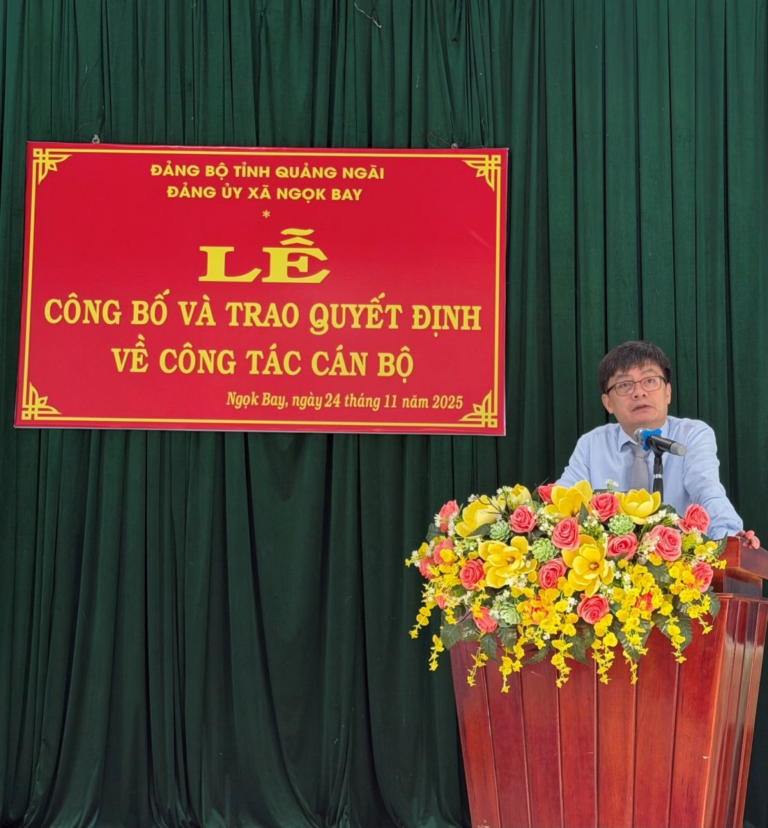 Sáng ngày 24/11/2025, Ban Chấp hành Đảng bộ xã Ngọk Bay tổ chức Lễ Công bố và trao Quyết định của Ban Thường vụ Tỉnh uỷ về công tác cán bộ. Tham dự buổi Lễ có các đồng chí trong Thường trực Đảng uỷ; các đồng chí Uỷ viên Ban Chấp hành Đảng bộ xã. Về dự buổi Lễ có đồng chí Nguyễn Thế Hải, Uỷ viên Ban Thường vụ Tỉnh ủy, Phó Chủ tịch Hội đồng nhân dân tỉnh và đồng chí Ngô Thị Hoàng Anh, Tỉnh ủy viên, Phó Trưởng ban Thường trực Ban Tổ chức Tỉnh ủy