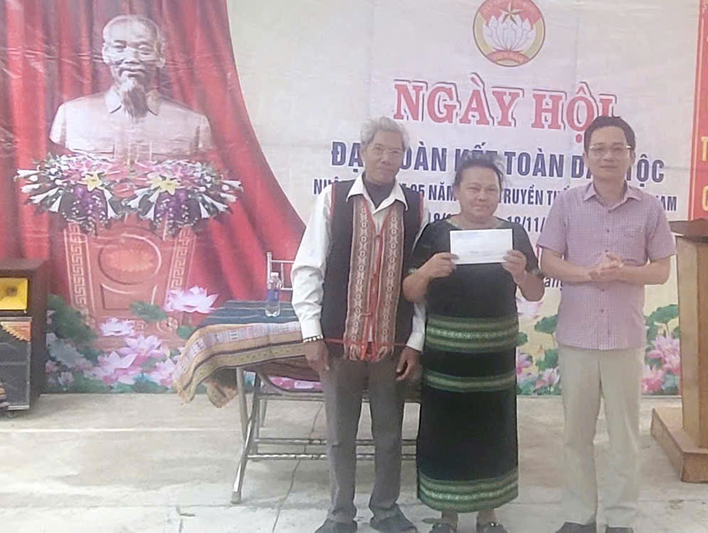 Chủ tịch Ủy ban Mặt trận Tổ quốc Việt Nam xã Phạm Văn Nghĩa tặng Giấy khen cho các tập thể và cá nhân tại Ngày hội