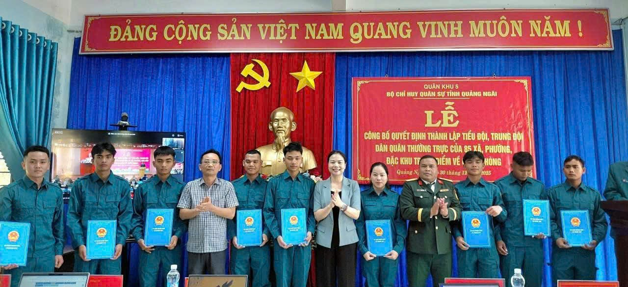 Thực hiện kế hoạch số 1532/KH-BCH, ngày 22/12/2025 của Bộ Chỉ huy Quân sự tỉnh Quảng Ngãi về tổ chức Lễ công bố quyết định thành lập tiểu đội, trung đội Dân quân tự vệ các xã, phường, Đặc khu tỉnh Quảng Ngãi. Chiều ngày 30/12/2025, Uỷ ban nhân dân xã Ngọk Bay tổ chức Lễ công bố quyết định thành lập tiểu đội dân quân thường trực xã Ngọk Bay.