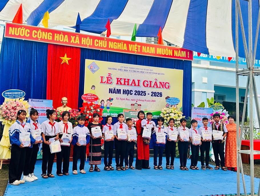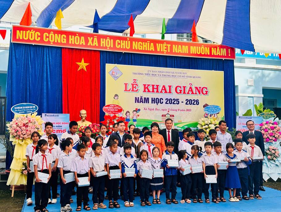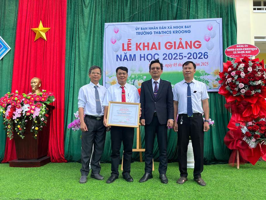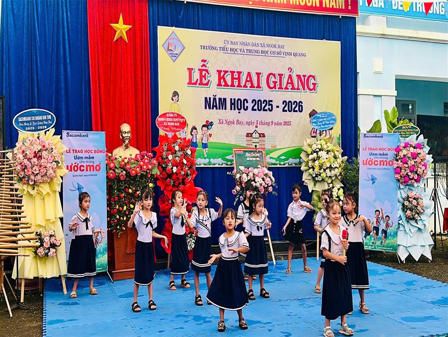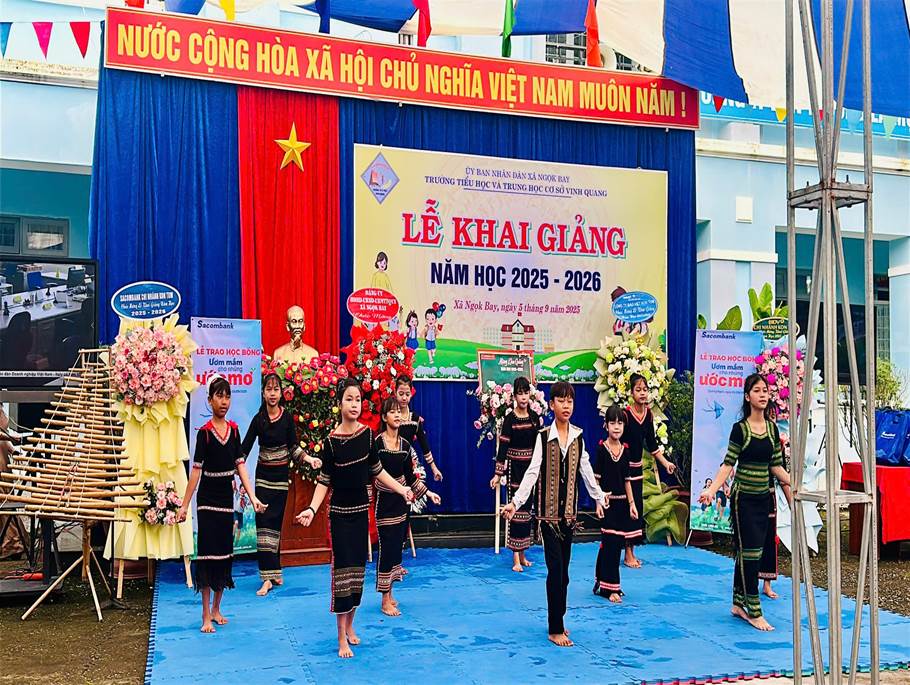 Sáng 05/9, trong không khí tưng bừng, phấn khởi của Ngày hội toàn dân đưa trẻ đến trường, hòa cùng hàng triệu học sinh trên cả nước, các trường học trên địa bàn xã Ngọk Bay đồng loạt tổ chức khai giảng năm học mới 2025-2026. Lễ khai giảng năm nay có nhiều dấu ấn đặc biệt khi kỷ niệm 80 năm thành lập Bộ Quốc gia Giáo dục (nay là Bộ Giáo dục và Đào tạo), toàn quốc vận hành theo mô hình chính quyền hai cấp và áp dụng khung thời gian đào tạo mới.
