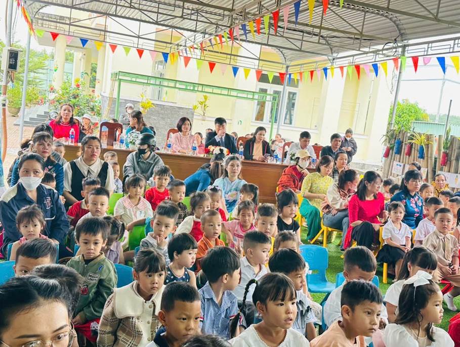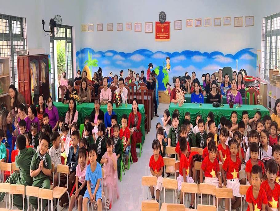 Đồng chí Trần Thị Phong Lan, Bí thư Đảng uỷ dự khai giảng tại Trường Mầm non Hoa Pơ Lang